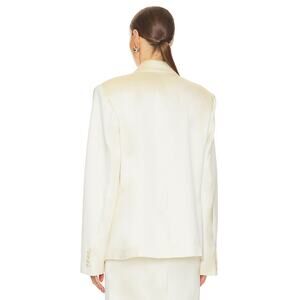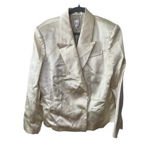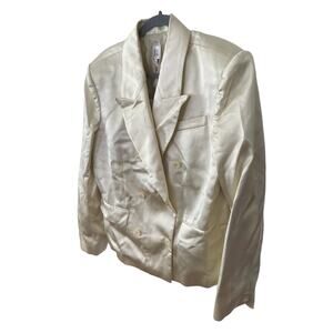 Helsa Heavy Satin Double Breasted Blazer Jacket Career Shoulder Pads Bone M