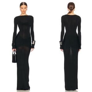 Helsa Josephine Long Sleeve Ruched Slinky Jersey Black Maxi Dress Size Medium is brand new with tags! Sold out everywhere and the perfect wedding guest or special events dress! Featuring: