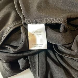 Please be aware there is a small tear at fabric by ruching at hip, pictured above and not too noticeable when wearing. Minor color transfer on brand tag, does not impact dress as it’s the brand tag on the inside of dress. Measurements below: