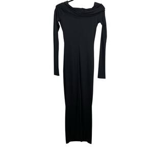 Helsa Matte Jersey Off Shoulder Ruched Long Sleeve Maxi Dress Black Size Small