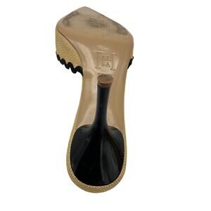 Helsa Pin Mule Gold Raffia Muslin Heel Size 7