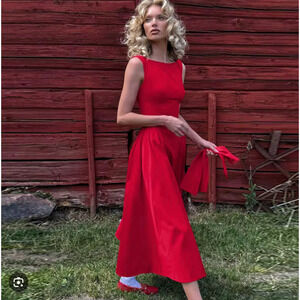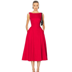 Helsa Red Stretch Cotton Sateen Midi Dress Size Large