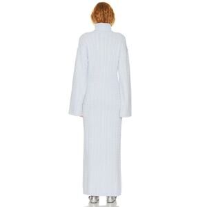 The Helsa Shai Cable Knit Sweater Dress in pale blue is a cozy and chic piece, crafted from a luxurious blend of wool and cashmere. Featuring a turtleneck design and intricate cable knit detailing, this dress offers warmth and style, perfect for cooler weather or relaxed yet polished outfits.