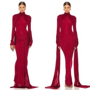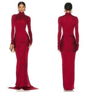 Helsa Slinky Jersey Sarong Long Sleeve Draped Maxi Dress in Samba Red Size M has been worn once and is in excellent condition! Sold out everywhere and hard to find!