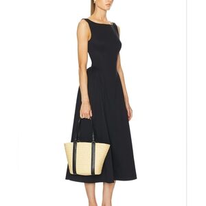 Helsa Stretch Cotton Sateen Midi Dress in Black