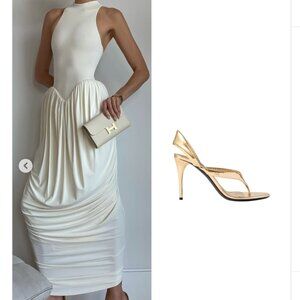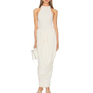 Helsa The Duchess Jersey Midi Dress Medium Ivory White Knit Cocktail Party