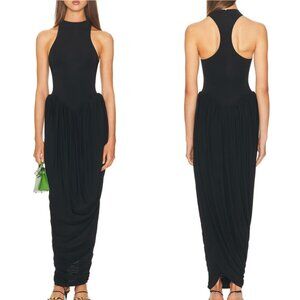 Helsa The Duchess Jersey Midi Dress Small Black Noir Knit Cocktail Party Event