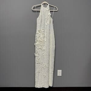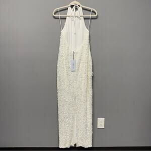 The Helsi Brice Halter Sequin Column Maxi Dress dazzles with its glimmering sequins and sleek halter neckline, creating a strikingly romantic and elegant silhouette.