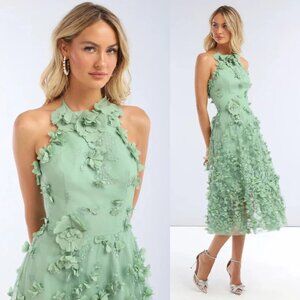helsi camilla sage green mint green pastel green floral applique halter midi dress xs wedding guest spring summer garden party bridesmaid dress floral mesh a line dress romantic feminine designer boutique luxury special occasion rehearsal dinner engagement party daytime formal midi dress elegant cottagecore whimsical resortwear neutral boho chic ethereal eventwear influencer style fashion blogger timeless spring fashion elevated spring outfit