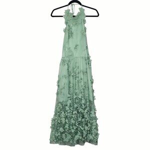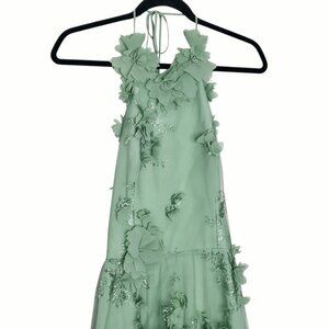 Helsi Camilla Sage Green Floral Applique Halter Midi Dress Size XS