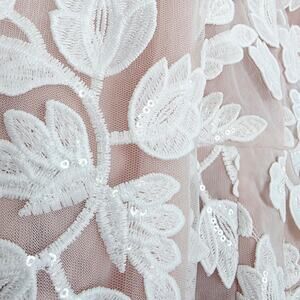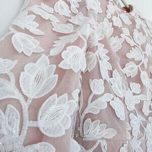 Helsi White & Tan Christy Scalloped Floral Applique Long Sleeve Mini Dress Size Small