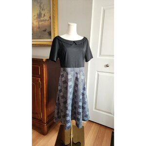 Helyo Size XL Black White Checkered Fit and Flare Semi Formal Dress