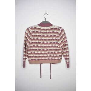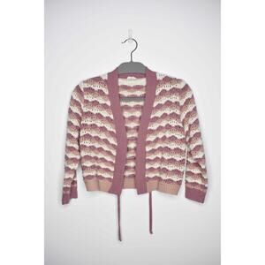 Hem & Thread Pink Striped Knit Tie-Front Open Cropped Cardigan Womens Small Cottagecore Boho Grannycore Crochet Feminine Barncore