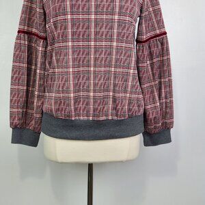 Hem & Thread 141204 Lantern Sleeve Plaid Elevated Sweatshirt Style Top Size M