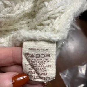 Adorable ivory/cream colored hem & thread sweater. Embellished with eyelash design. Very warm and cozy. Excellent gently loved condition. Size medium.