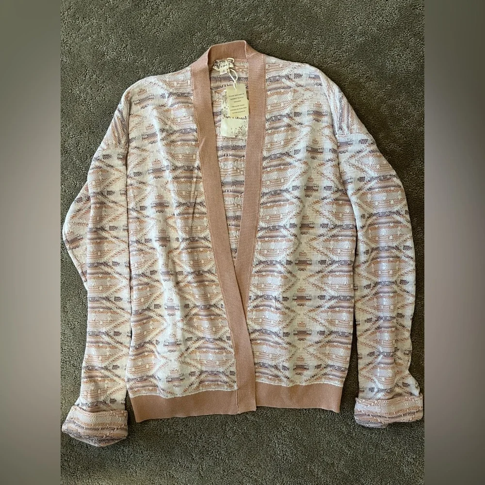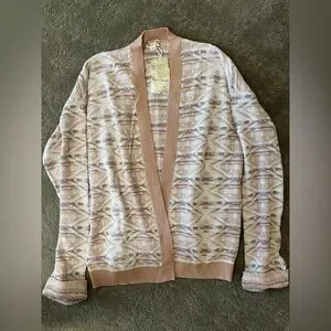 Stylish cardigan with a geometric pattern. Open front design. Perfect for layering.