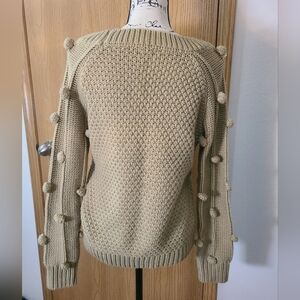 Hem & Thread Beige Pom Pom Sleeve Chunky Knit Sweater