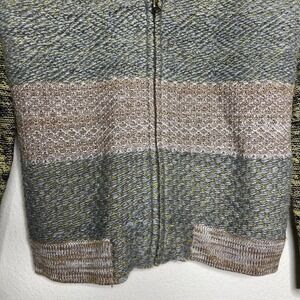 Hem & Thread Colorful Color Blocked Wool Blend Zip Up Cardigan Sweater Sz S