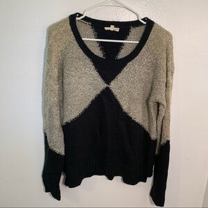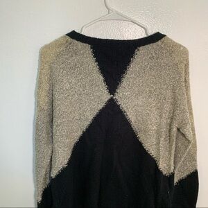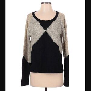 Good condition, minor wear. Hem & Thread. Crewneck Sweater. Black with oatmeal beige diamond geometric pattern. Style L2393. Size Small/Medium. 70% acrylic, 25% wool, 5% polyester. Pit to pit laying flat 21” Shoulder to hem 22” Sleeve (pit to hem) 24”. All measurements are approximate and taken lying flat. Smoke free home. No trades, offers welcome.