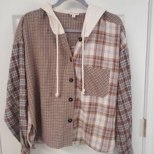 brand: Hem & Thread Size: Large P2P: 24" Length: 23" •Hoodie •Plaid •Button-Down