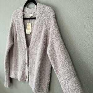 Hem & Thread Fluffy Knit V Neck Button Front New Womens Cozy Cardigan Sweater