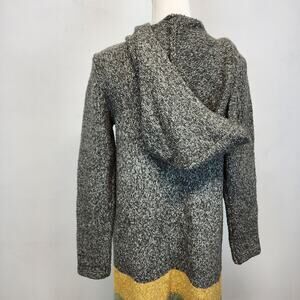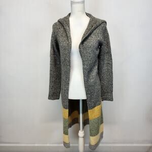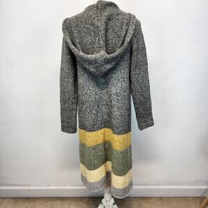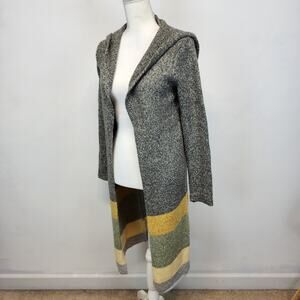 Hem & Thread Long Cardigan Size M Hooded Gray Stripe Open Front Soft Boho