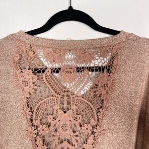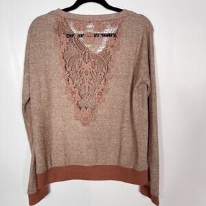 Hem & Thread M Orange Rust Heather Lace Inset Back VNeck Pullover Sweatshirt