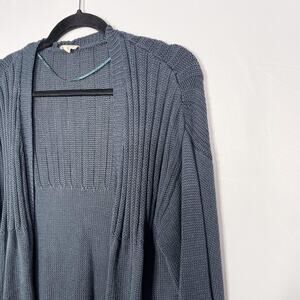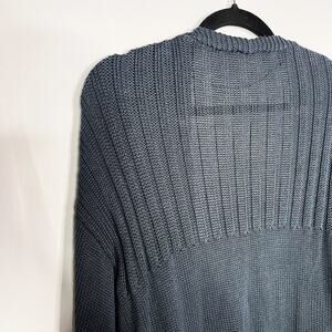 Hem & Thread M Teal Blue Green Chunky Knit Open Front Cardigan Sweater Textured
