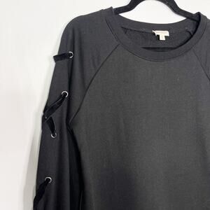 Hem & Thread Medium M Black Lace Up Sleeve Pullover Sweatshirt Crew Neck