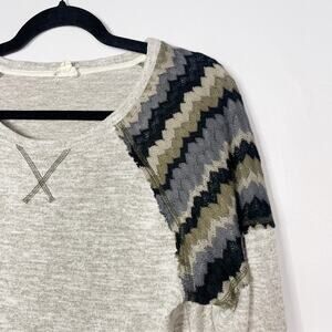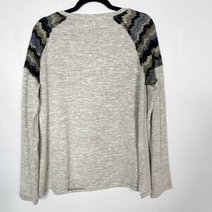 Hem & Thread Medium M Gray Heather Chevron Shoulder Patch Crew Neck Pullover