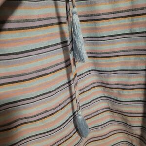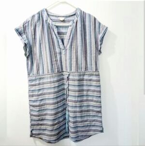 This mostly cotton mini dress is a great way to combat the heat of Summer. It's loose fitting with a tasselled waist drawstring to provide shaping.