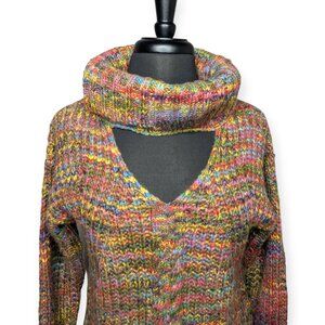 Hem & Thread Multicolored Cable Knit Cowl Sweater w/ Keyhole Cutout Size Small