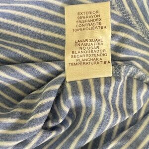 Elevate your casual wardrobe with this stunning Hem & Thread off-the-shoulder ruffled top. The blue and white horizontal striped pattern, short sleeves, and layered ruffled neckline make it perfect for a bohemian or classic look. This lightweight woven top is made of polyester, spandex, and rayon, making it comfortable to wear during any season.