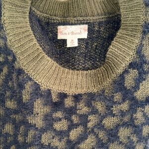 Hem & Thread Olive Green and Navy Blue Fuzzy Sweater