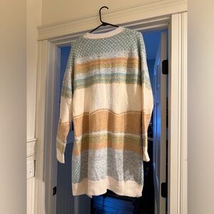 Chic open-front cardigan with soft pastel stripes. Perfect for layering and casual wear.