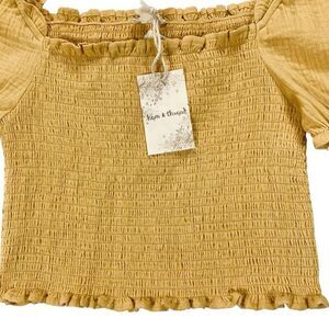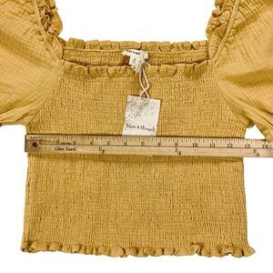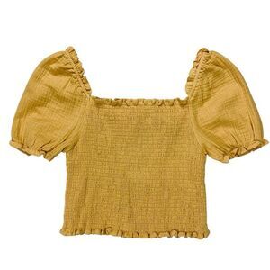 - Description: Hem & Thread Puff Sleeve Smocked Crop Top M Yellow Hippie Boho Summer Blouse