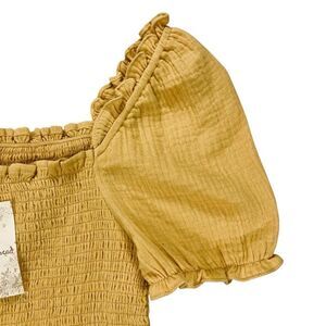 Hem & Thread Puff Sleeve Smocked Crop Top M Yellow Hippie Boho Summer Blouse New
