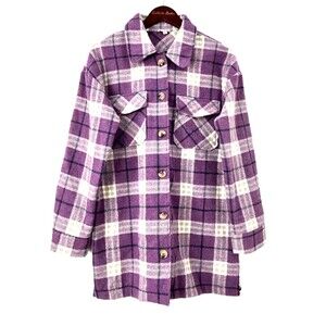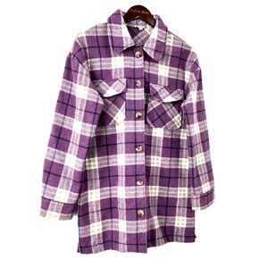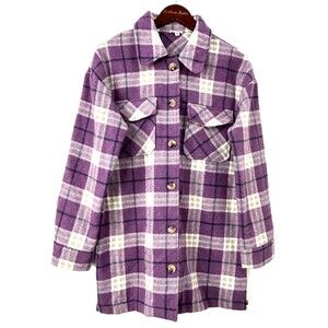 Hem & Thread Purple Plaid Wool Blend Shacket Boho Chic Casual Size Large 1157E2