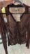 Hem & Thread Size Large Sheer Brown Blouse. Bronze Color Buttons Down the Front and Cuffs. Rouching on Front. P2P is 29 inches. There is stretch