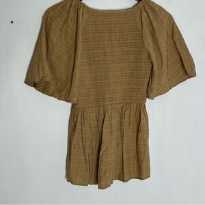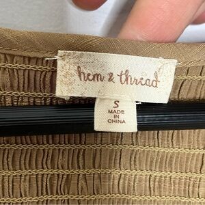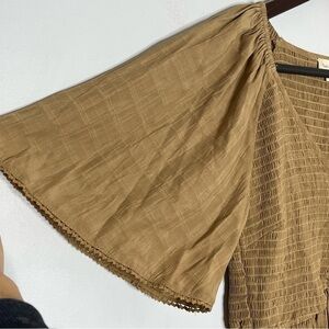 Hem & Thread Size Small Flutter Sleeve Smocked V-neck Top Brown