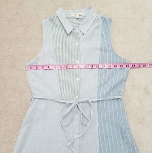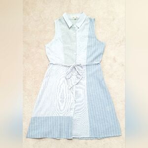 Hem & Thread Sleeveless Shirt Dress Size Small Blue Striped Button Front Tie