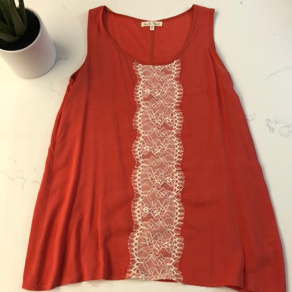 Pretty Hem & Thread orange sleeveless top with beautiful lace detail on front and back. Perfect for fall.