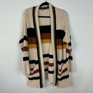 Hem & Thread Striped Cardigan Chunky Knit Casual Boho Neutral