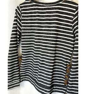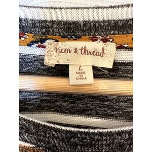 Hem & Thread Striped Pullover Knit Top Sz L with Boho Floral Side Ties Bohemian