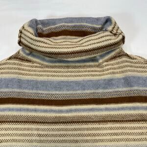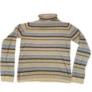 Hem & Thread Striped Turtleneck Sweater Women's L Soft Knit Brown Blue Cream