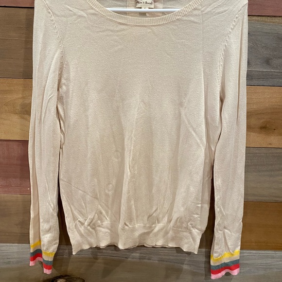 Cream light weight sweater with stripes on the wrists