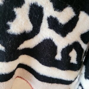 Super cute black and cream sweater with unique furry leopard pattern. Soft and comfortable. Some small signs of pilling.