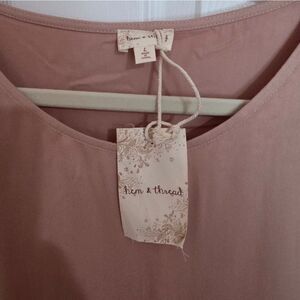 Hem & Thread Tan Blouse with Striped Sleeves Size LG