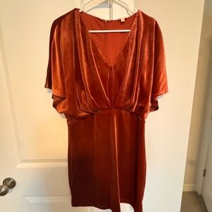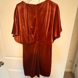 Velvet V-neck mini dress with pleats at waist -SELF:92% POLYESTER 8% SPANDEX -LINING:100% POLYESTER