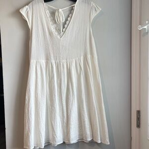 Hem & Thread White Babydoll Dress with Lace Trim Detail - Size Large - NWT